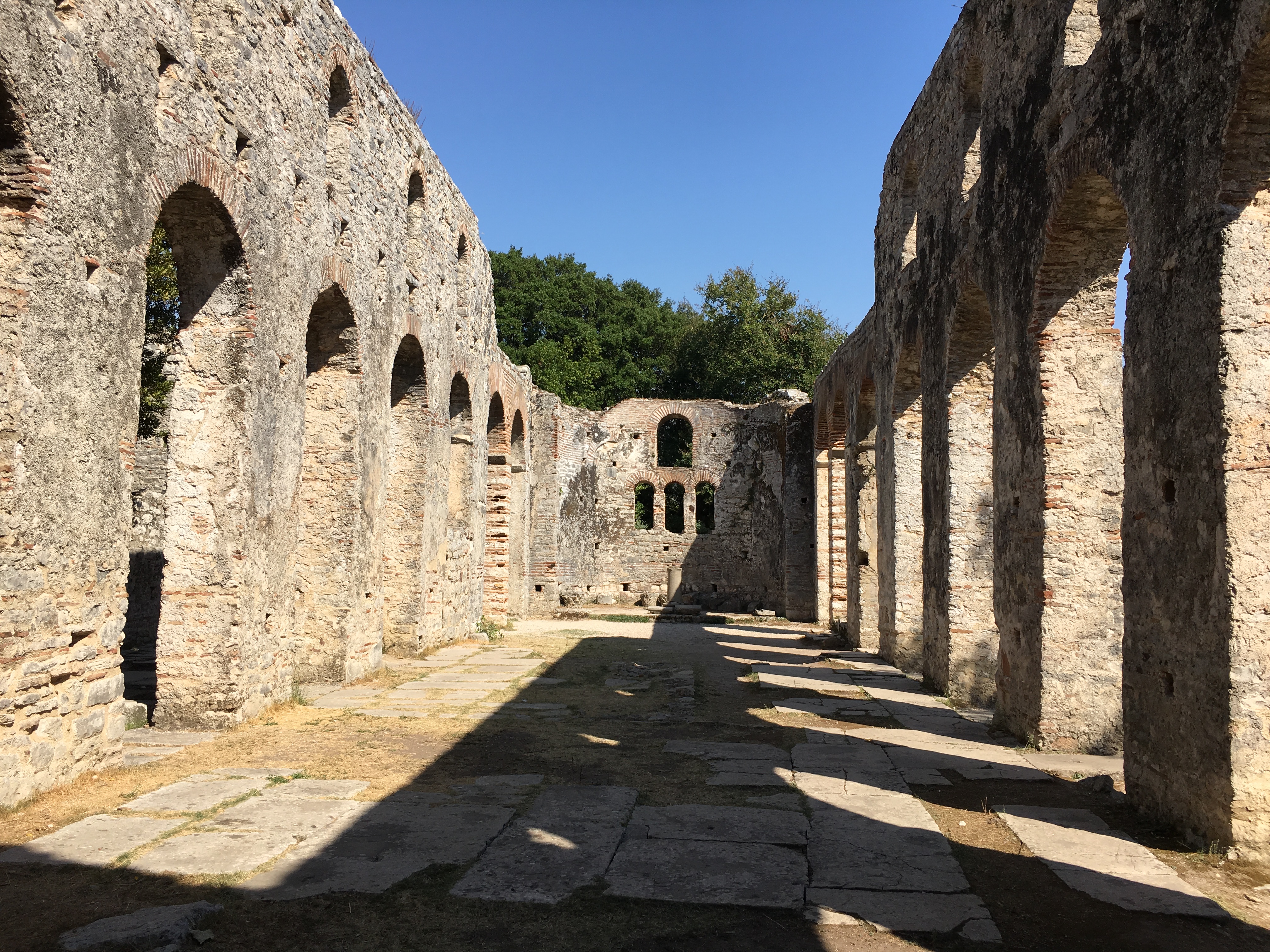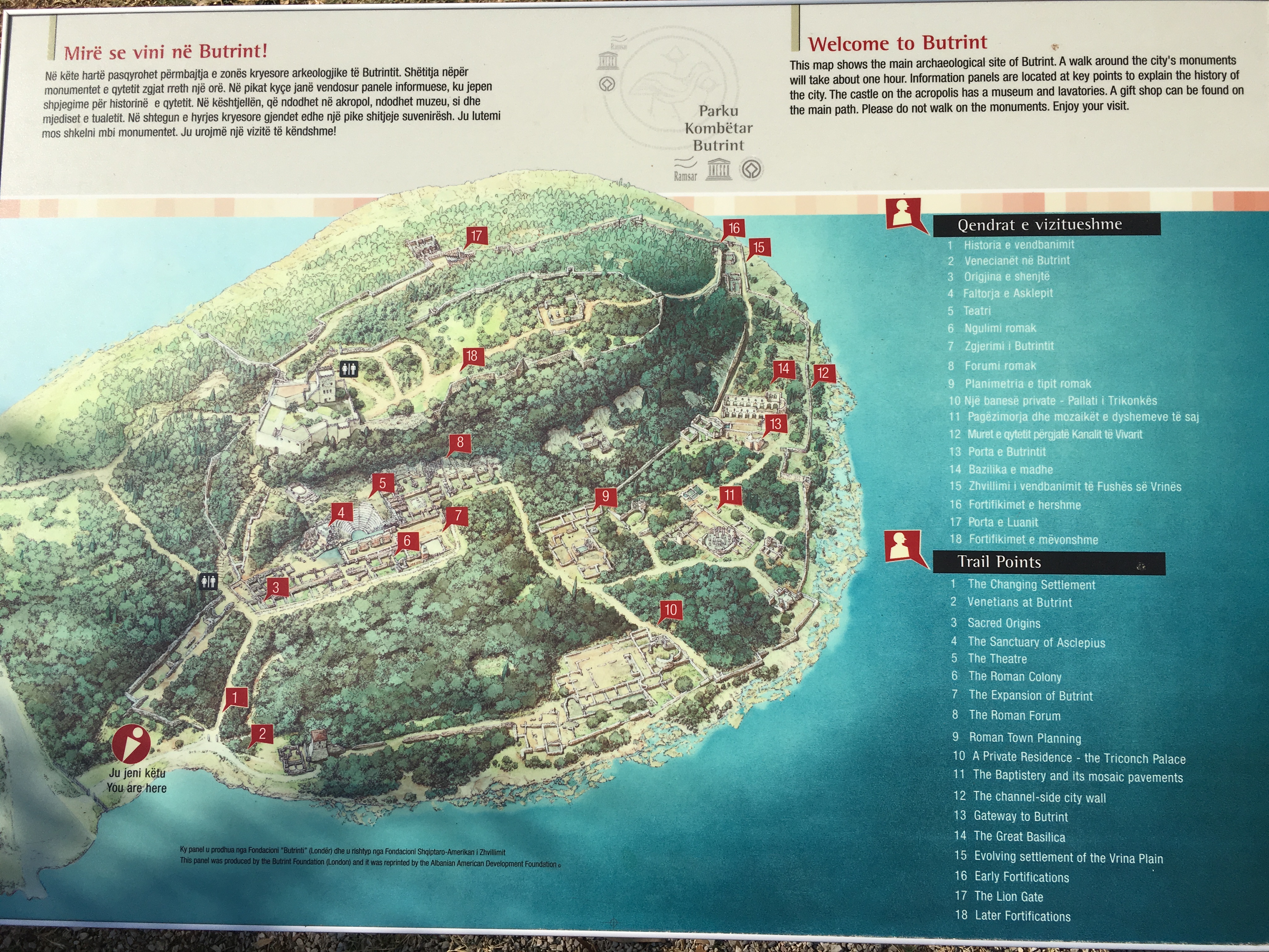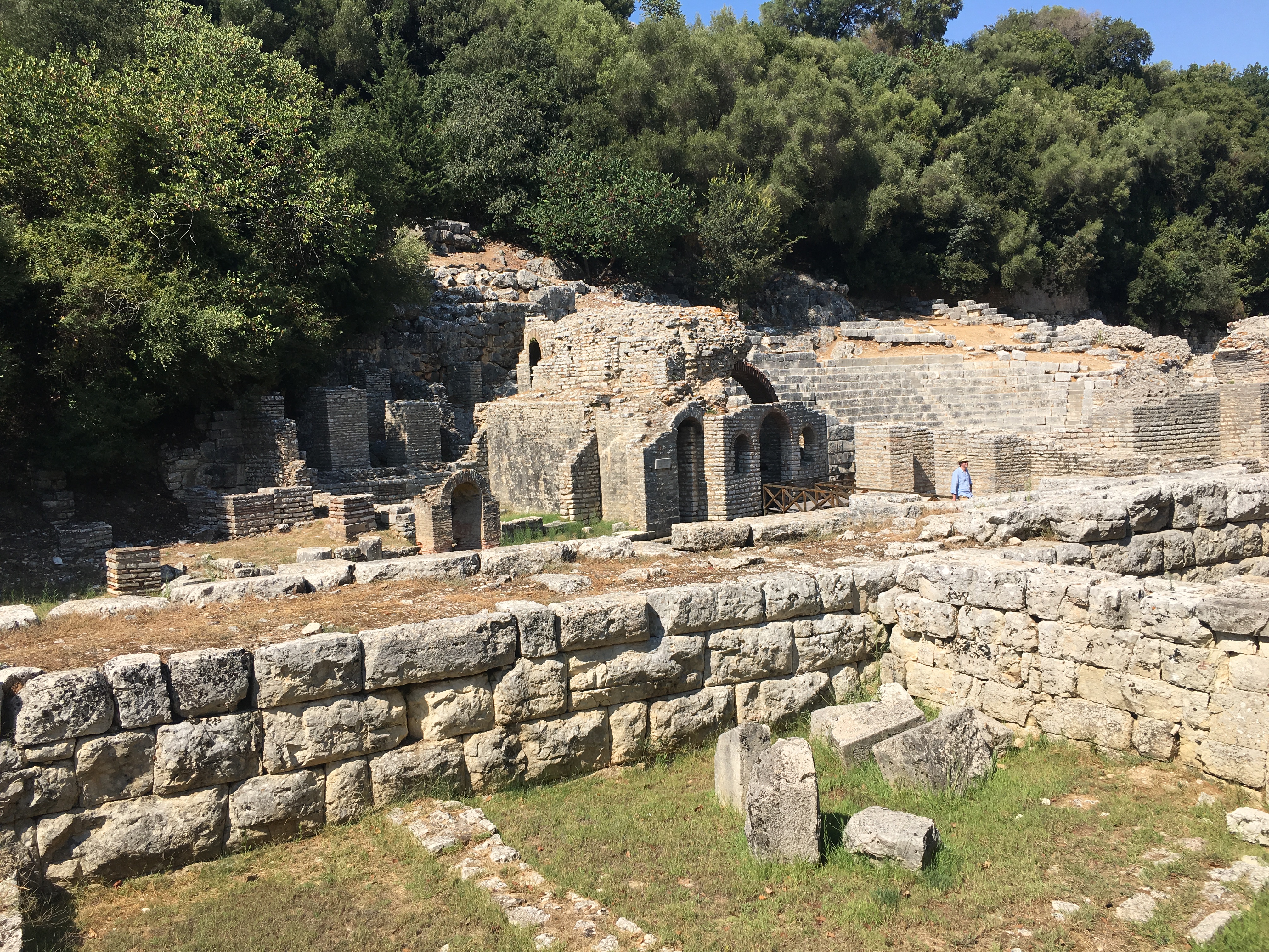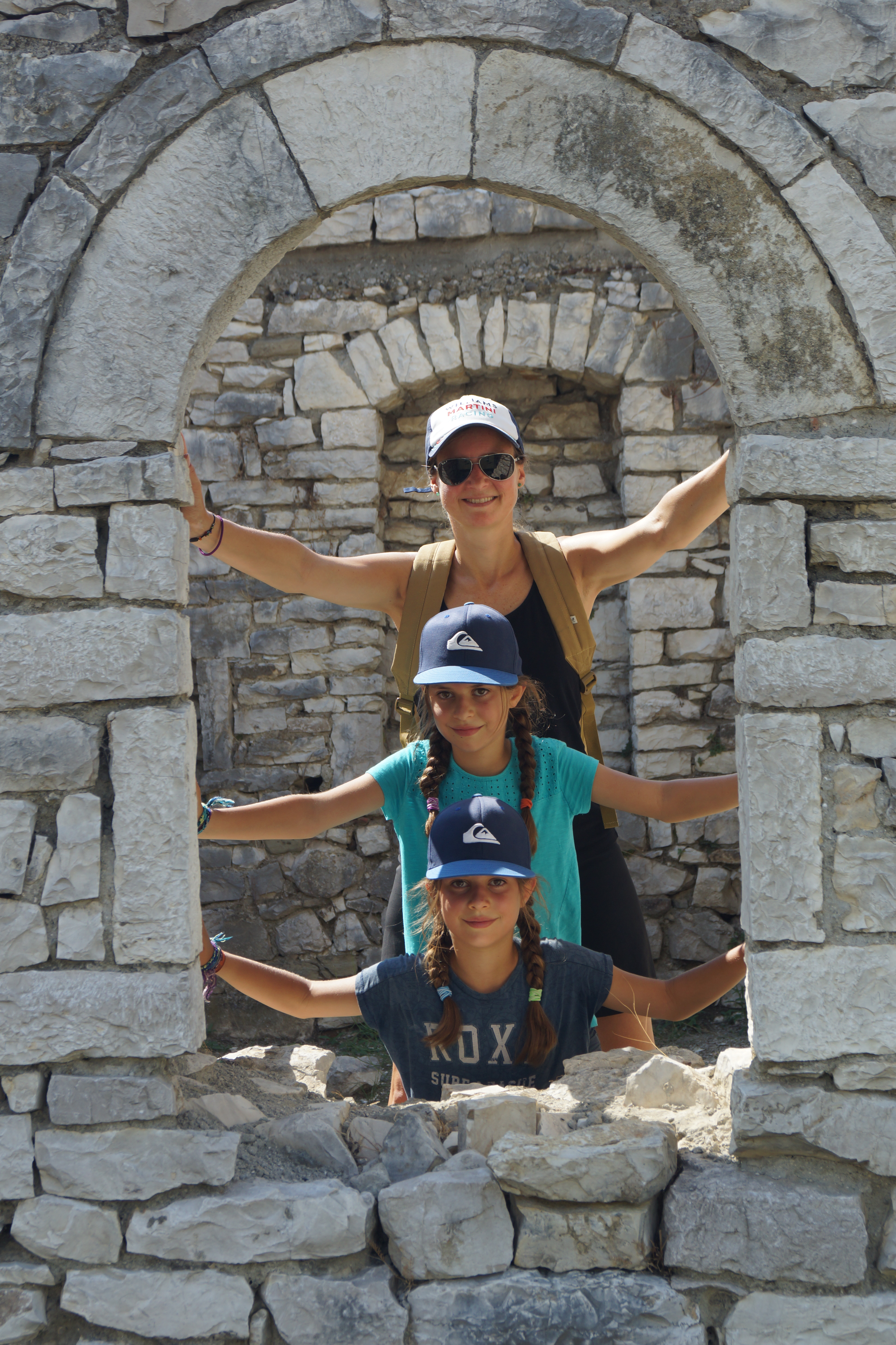 Der Butrint-Nationalpark ist einer der bedeutensten, archäologischen Stätten im Mittelmeerraum. Durch die Siedlungsvielfalt findet man dort eine große Anzahl griechischer, römischer, byzantinischer, venezianischer und osmanischer Überreste. Seit 1992 auf der Liste des Weltkulturerbes. Dieser Ort ist seit mindestens 20.000 Jahren besiedelt, und man kann in 2-3 Stunden bequem durch den schattigen Park wandern. Sogar Sophia und Fiona waren von den vielen, gut erhaltenden Säulen und antiken Gebäuden begeistert.