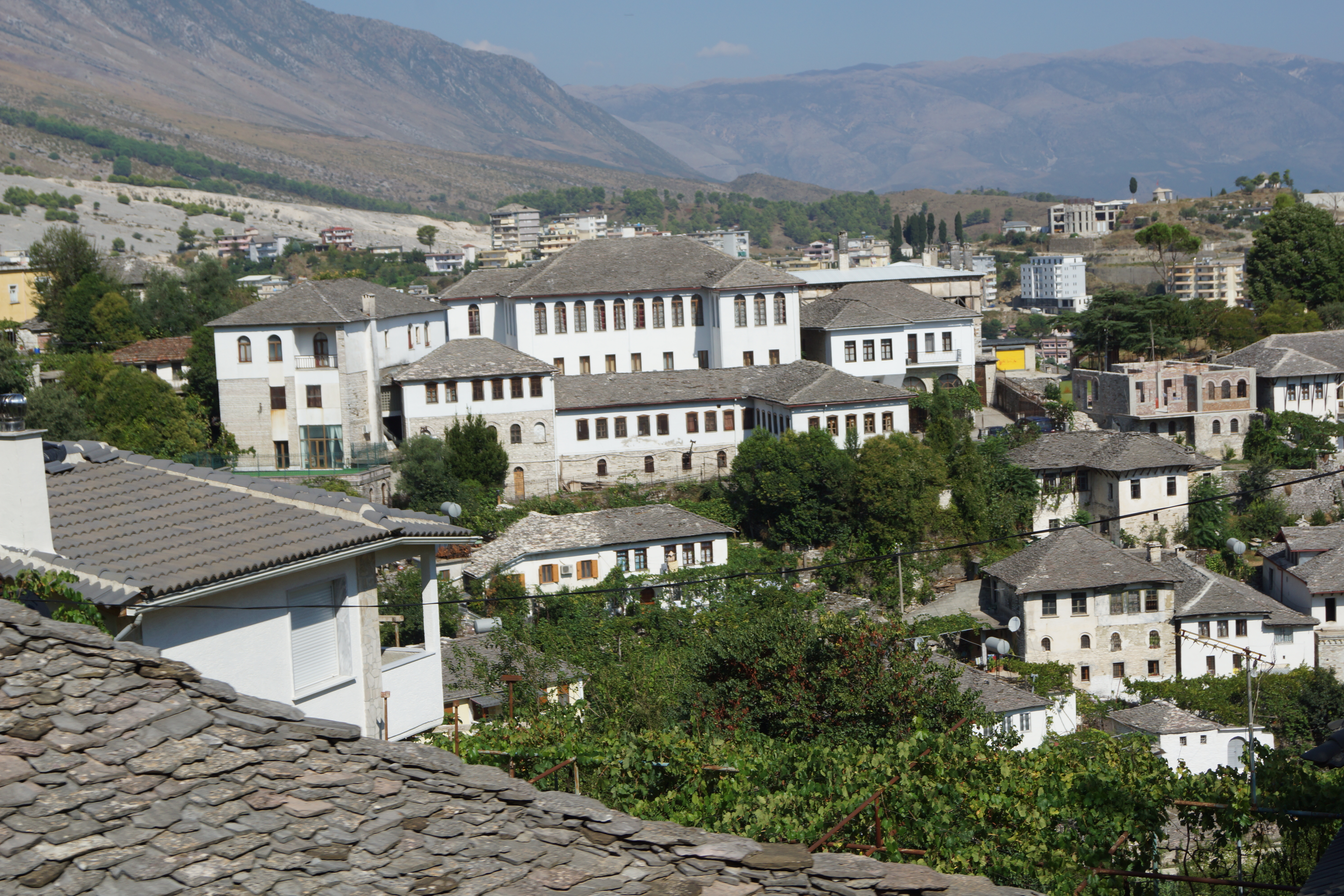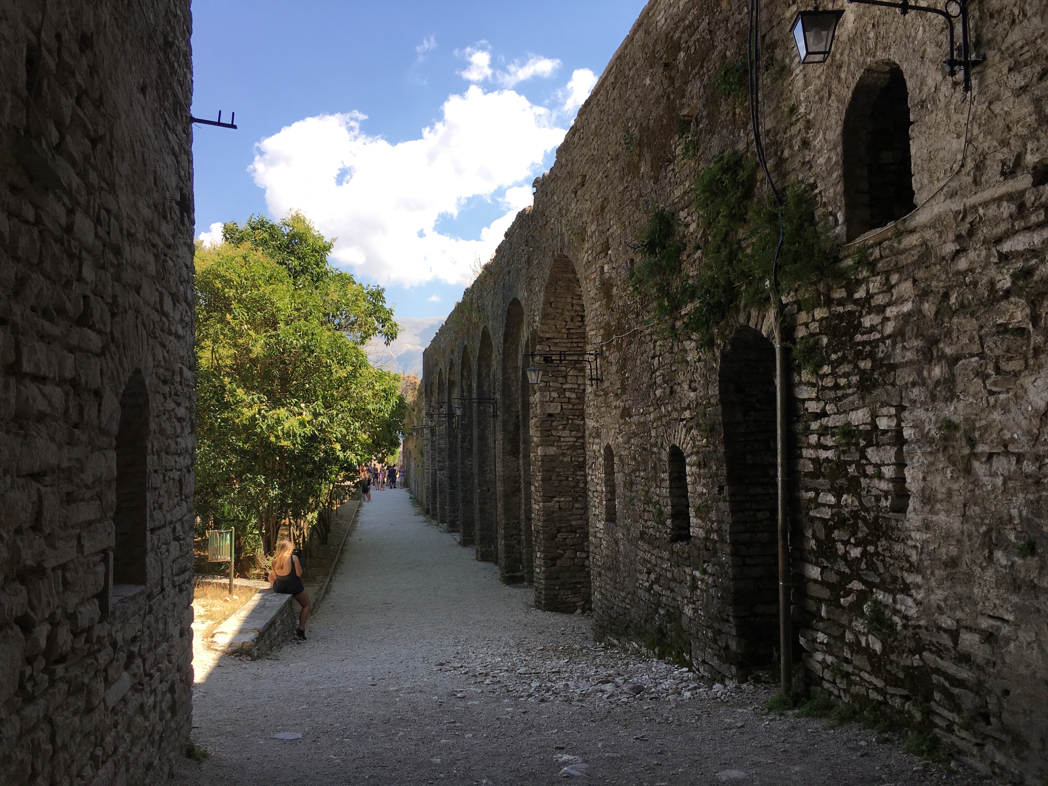 Schnell erreichen wir unser nächstes Ziel – die Stadt Gjirokastra. Der Weg führt über zahreiche Brücken am glasklaren Fluss/Kanal entlang, der aus dem Blue Eye, einer tiefen Quelle nach Jogucat entspringt.