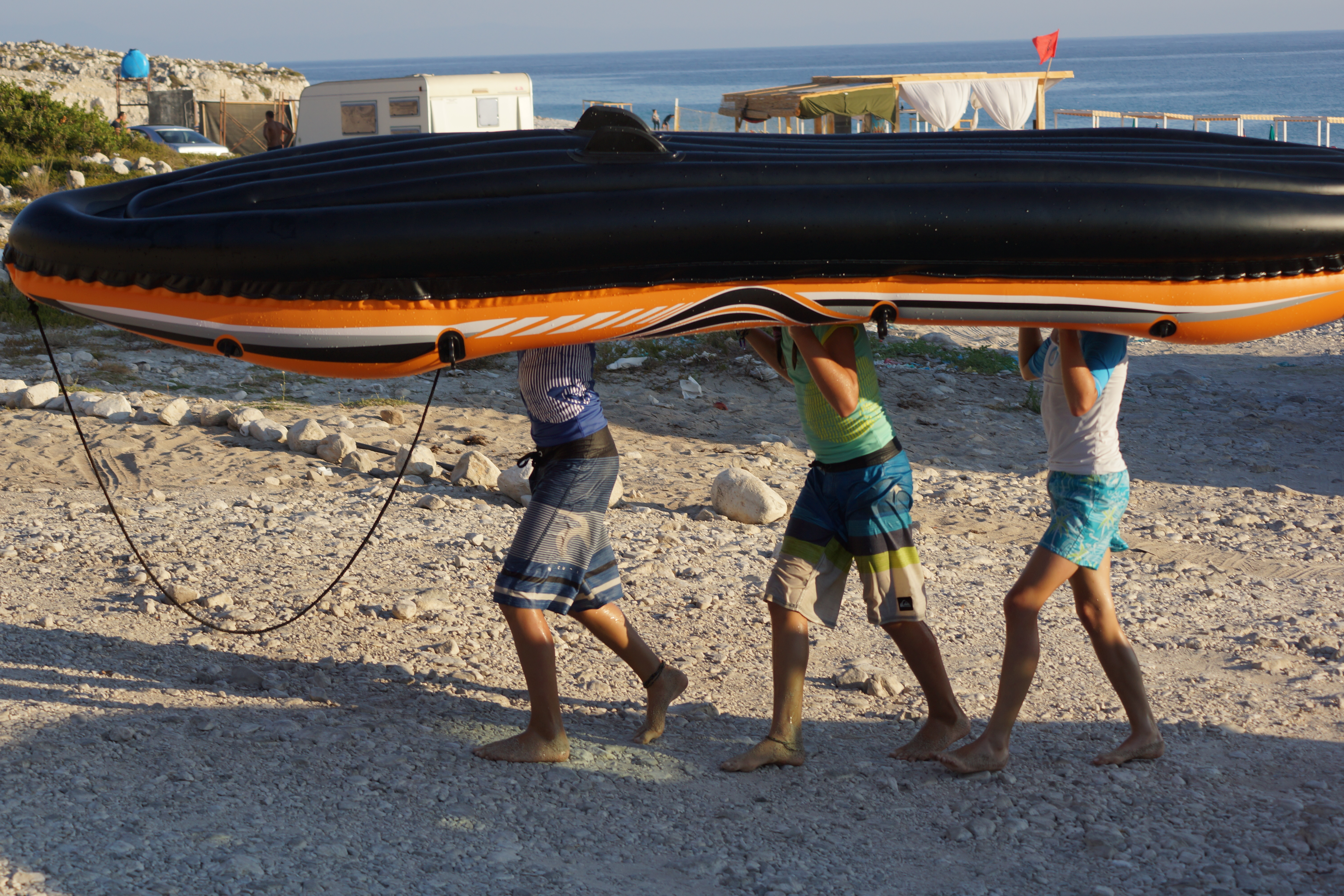 6 Monate lang, jedes Wochenende und viele Abende haben wir am Ausbau unserer Maggy gearbeitet. Nach 2 Testwochenenden und noch einigen Verbesserungsarbeiten geht es endlich los. Die erste Reise soll nach Albanien gehen, das gelobte Land aller Allradfahrer und Abenteuerlustigen, die auf freies Campen und ursprüngliche Natur stehen. Wir sind gespannt wie wir diese „andere Art zu Reisen“ aufnehmen. Nach 22 Jahren Surfurlauben und der Suche nach der perfekten Welle haben wir gar kein Ziel vor Augen, ja wir sind eher skeptisch. Was machen wir überhaupt in den Balkanstaaten? Wir verstehen die Sprache nicht, kennen weder die Gewohnheiten noch die Mentalität. Vorsichtshalber nehmen wir ein Bilder-Sprachbuch, die Angeln und 2 aufblasbare Kanus mit, ein Fernglas, Land- und Offroadkarten, Bergschuhe, Kletterzeug, ein paar Lebensmittel und Badesachen.