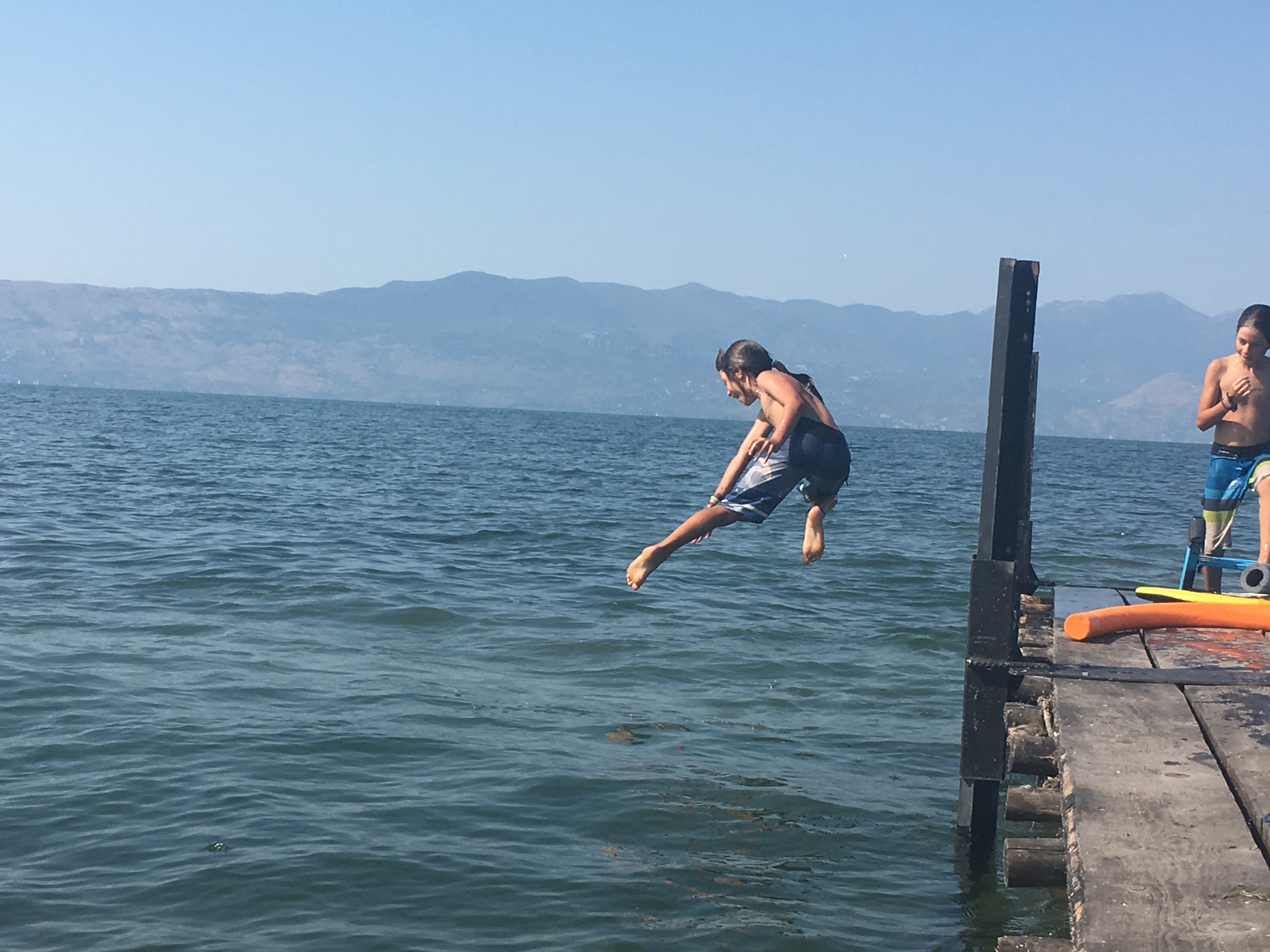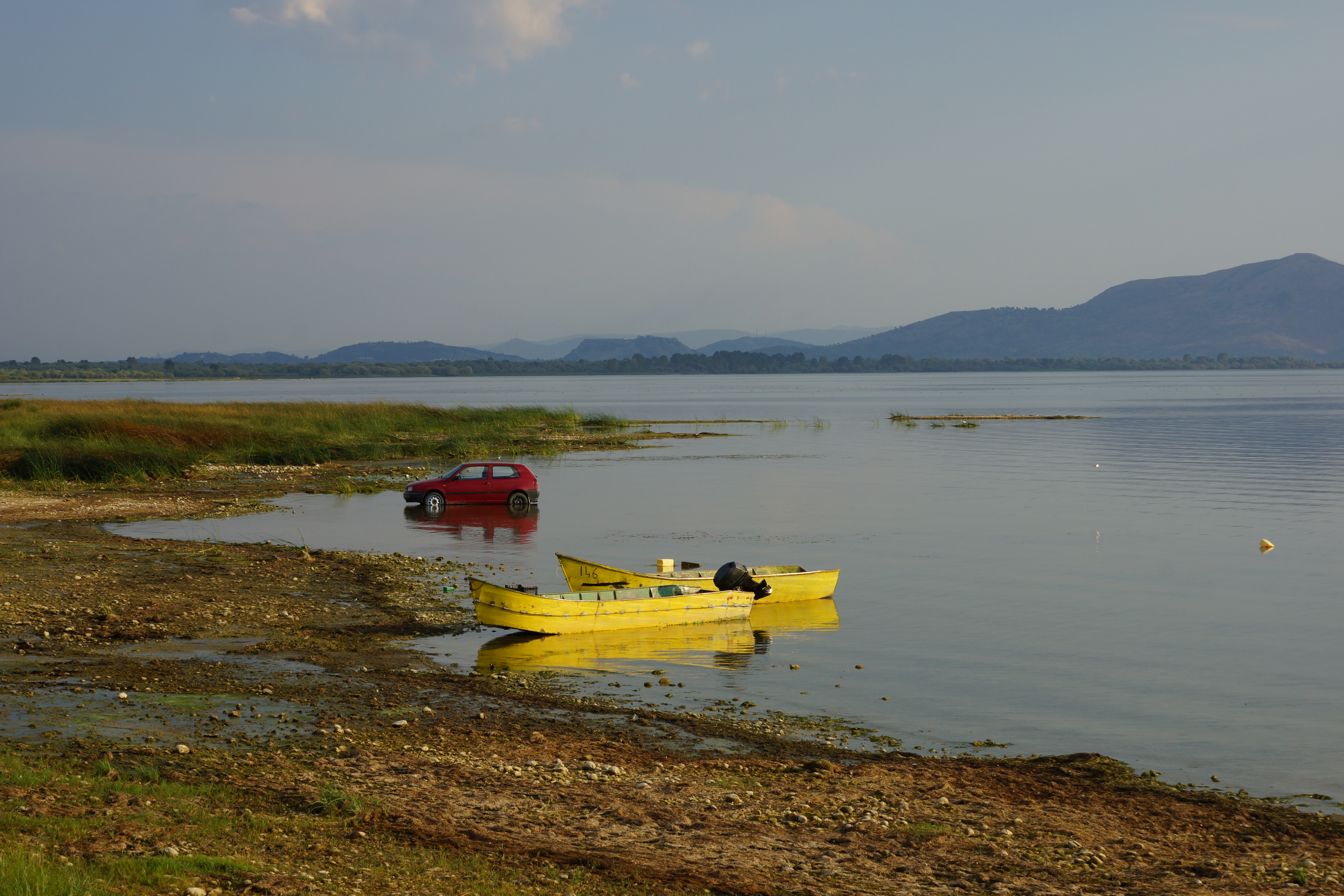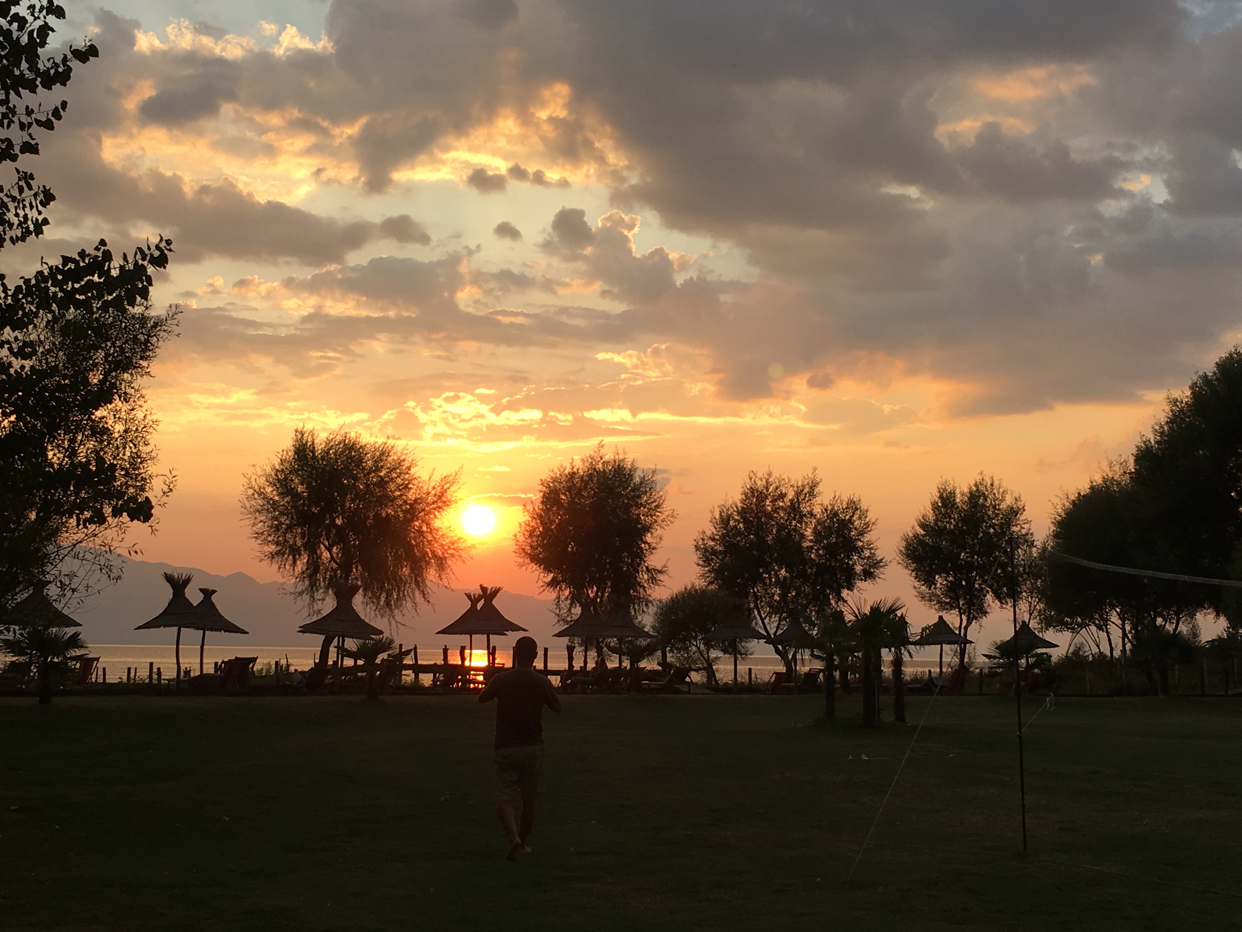 Am 1. September um 10.30 Uhr geht es weiter zum Lake Shkrodra Resort, eine große Etappe liegt vor uns, die wir in einem Schwung bewältigen wollen. Nach einer langen Mittagspause erreichen wir gegen 18.00 Uhr den größten See in der Balkanregion, er ist teils Albanisch, und teils gehört er zu Montenegro. Das Resort wurde uns von mehreren Seiten empfohlen und wir sind erstaunt wie toll hier alles organisiert ist, wie sauber und schön die Anlage ist. Wir treffen auf unsere Rumänen, die uns schon freudig erwarten. Im Restaurant tauschen wir unsere letzten Erfahrungen aus. Am nächste Tag wird Wäsche gewaschen, geangelt und gechillt, wir fangen elf kleine Fische die wir am Abend auf den Grill schmeißen. Mike und Maggy haben Auszeit – alle sind glücklich. Sophia wird von einer Wasserschlange mit einem ca. 10 cm langen Barsch im Maul am Bein gestreift, woraufhin das Baden im See für uns nicht ganz entspannt ist. Der Artenreichtum der Tiere ist sehr präsent.