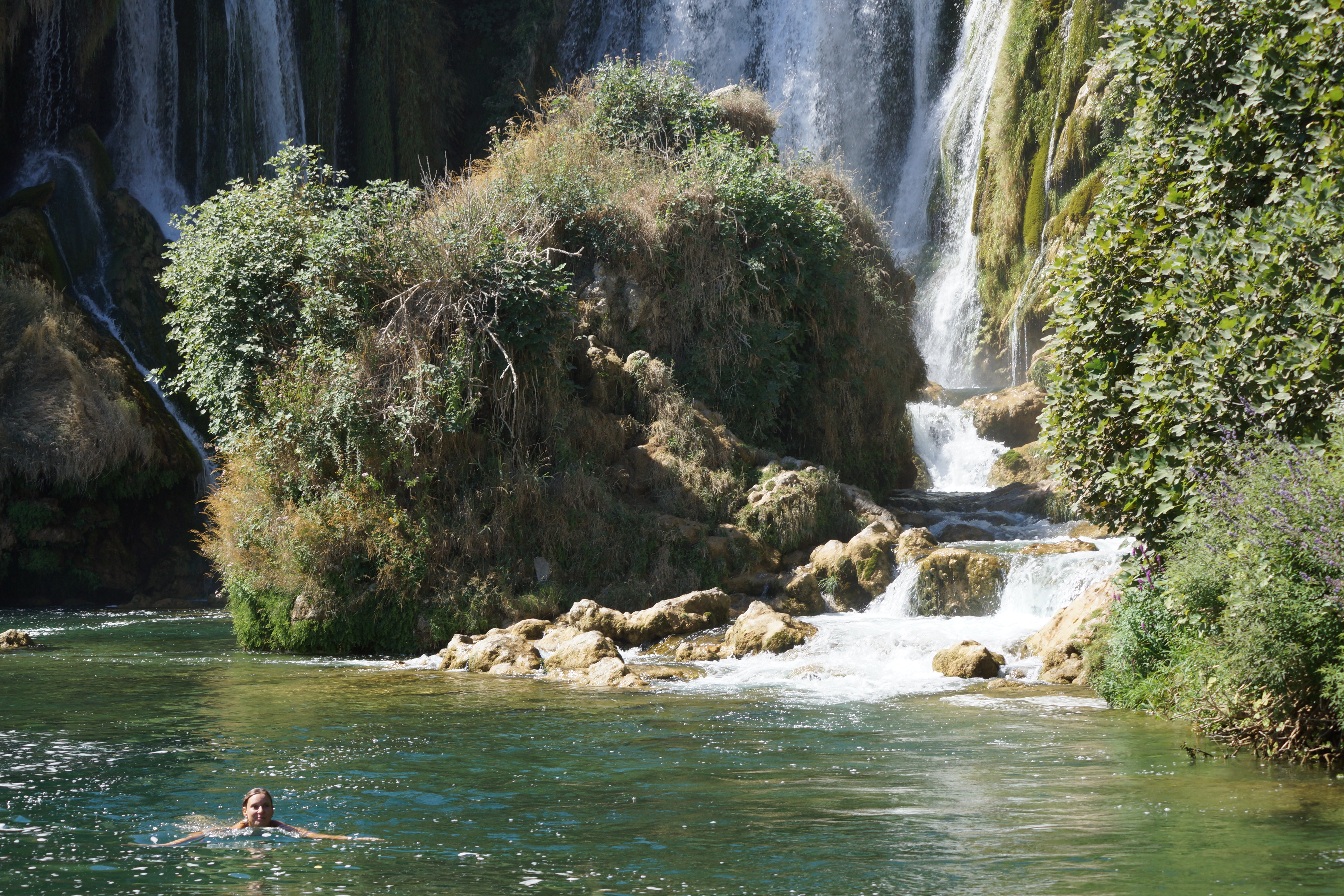 Der Professor mit der Balkan Drivers Group warten schon in Kroatien auf uns. Per Anruf wurden wir auf ein gemeinsames Dorade- und Muschelessen festgenagelt. Die Kravica Wasserfälle lassen wir uns aber trotzdem nicht entgehen. Hier hat auch schon Winnetou gebadet. https://de.wikipedia.org/wiki/Kravica