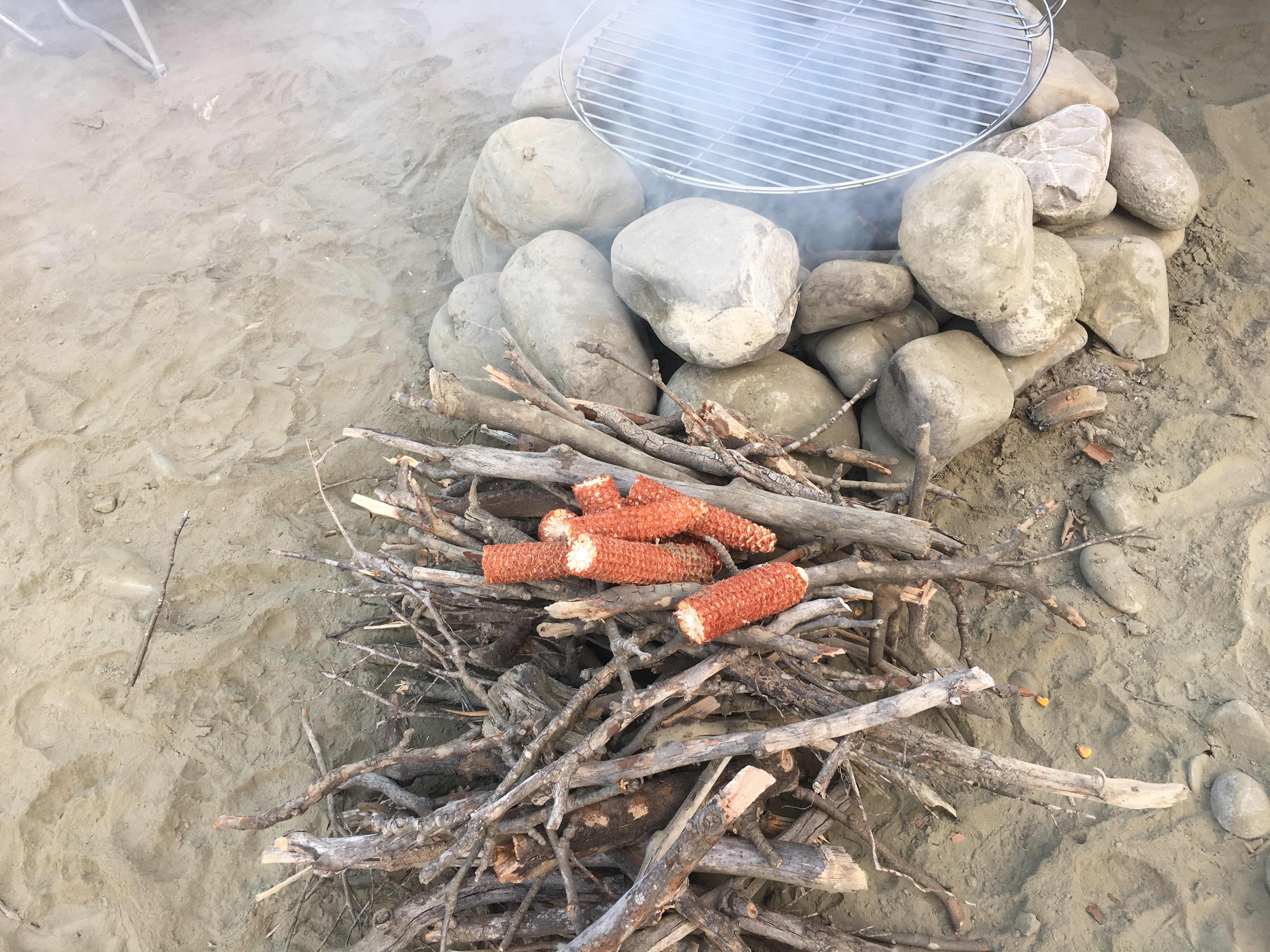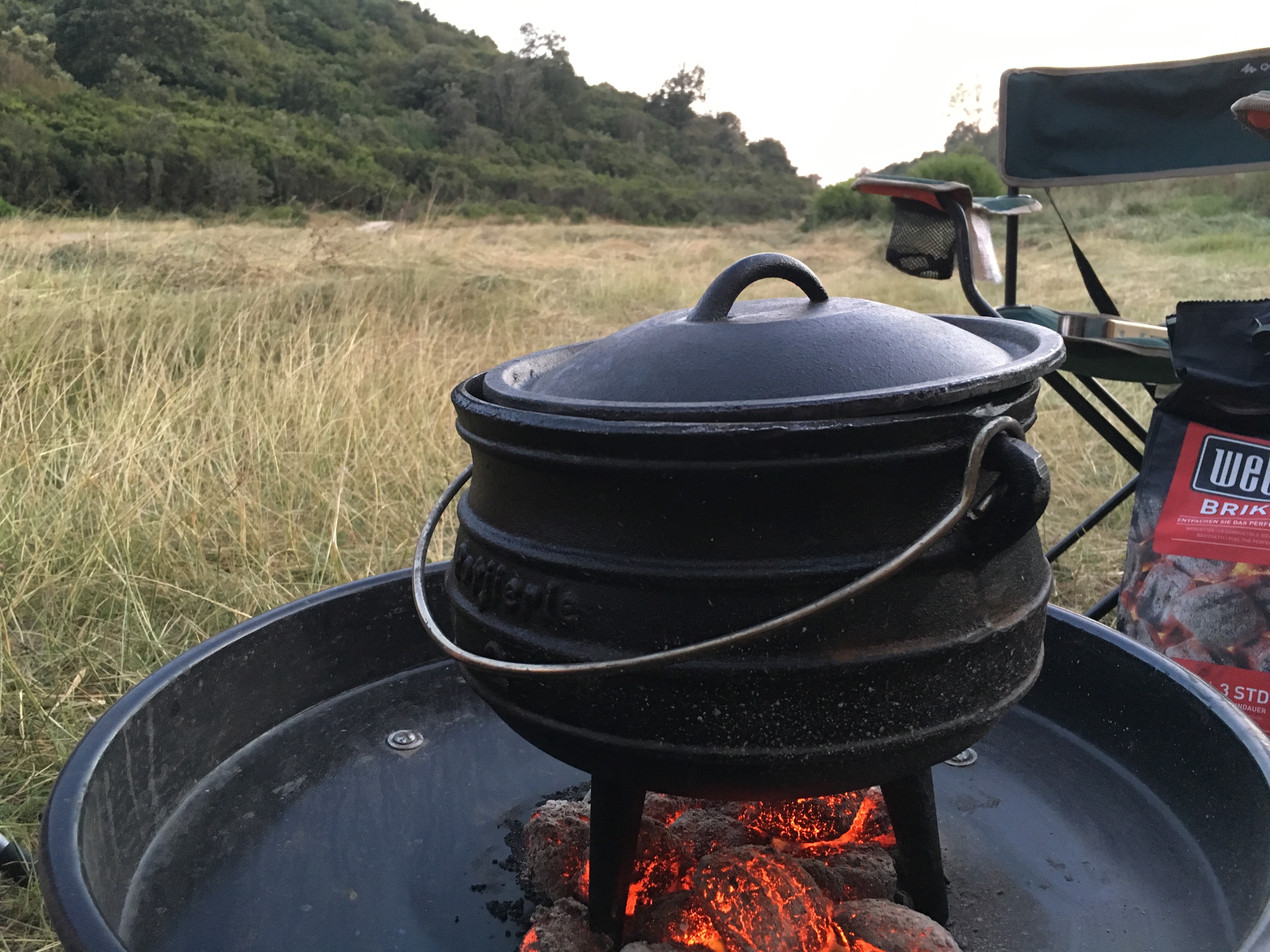 Tipp: Brotbacken am Lagerfeuer – unser erster Versuche war verbesserungswürdig. Man kann den Potje nicht einfach in die Glut stellen ohne ein Anbrennen zu riskieren. Der Durchbruch kam bei uns erst als wir ein Loch neben dem Feuer gruben, den Potje hineinstellten und dann rundherum Holzkohle hineinschaufelten. Das selbstgehend Mehl ist eher ein Flop. Besser normales Mehl und Trockenhefe in Bier gemischt zusetzen. Für 500g Mehl, ein Päckchen Hefe und 250 – 300ml Bier. 1TL Zucker und 1 TL Salz nicht vergessen. Das Brot braucht dann etwa 50Min. und ist sehr lecker.