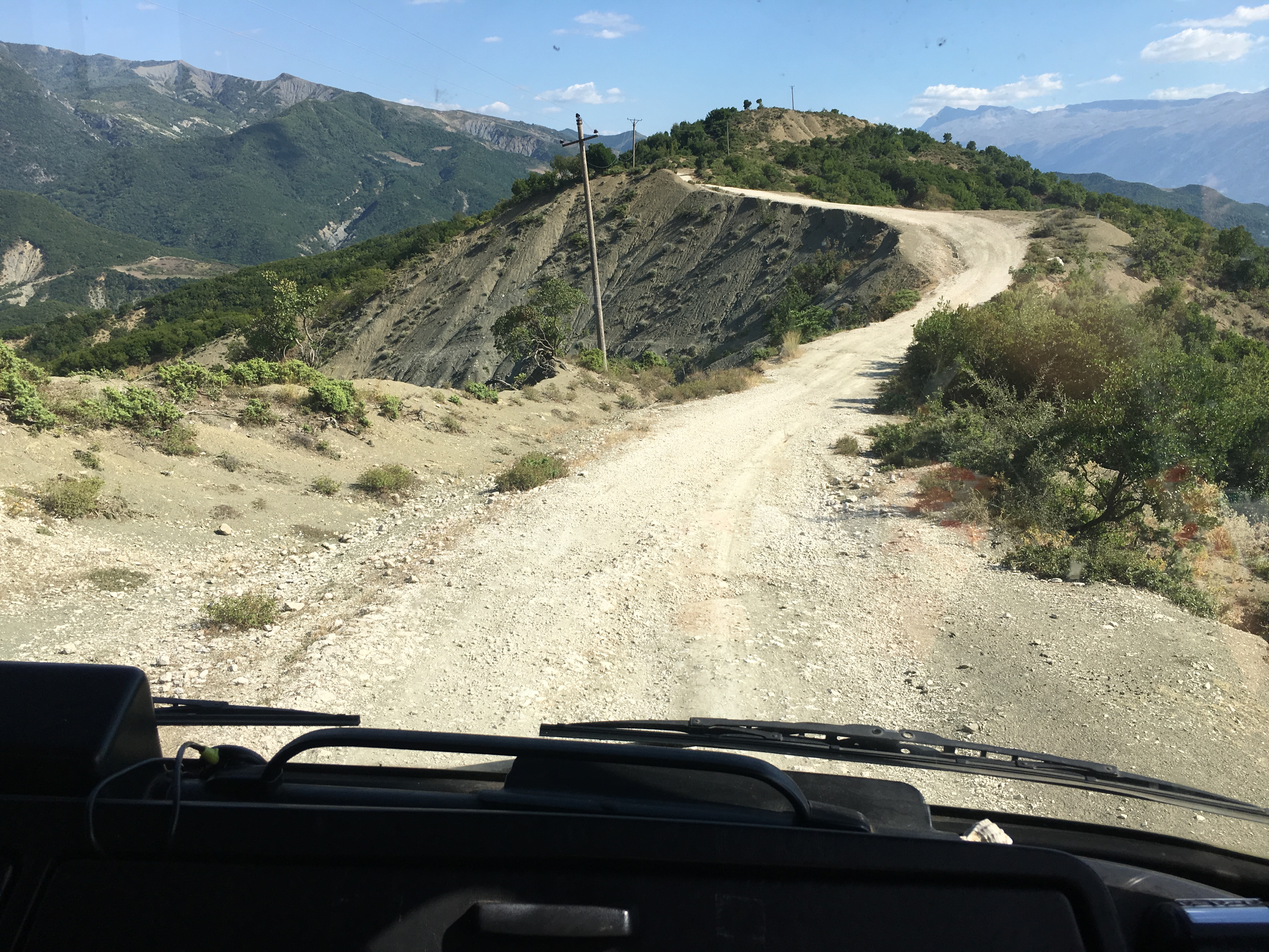 Mike will weiter nach Girokaster und hat die Route dazu schon im Kopf, er meint es ist ein Katzensprung hat aber vergessen dass wir uns in Albanien befinden. Ein schöner Offroad-Track führt uns hoch in die Berge, es schunkelt und schaukelt und wir machen eine der Touren, die in unserem Offroad Guide beschrieben sind.