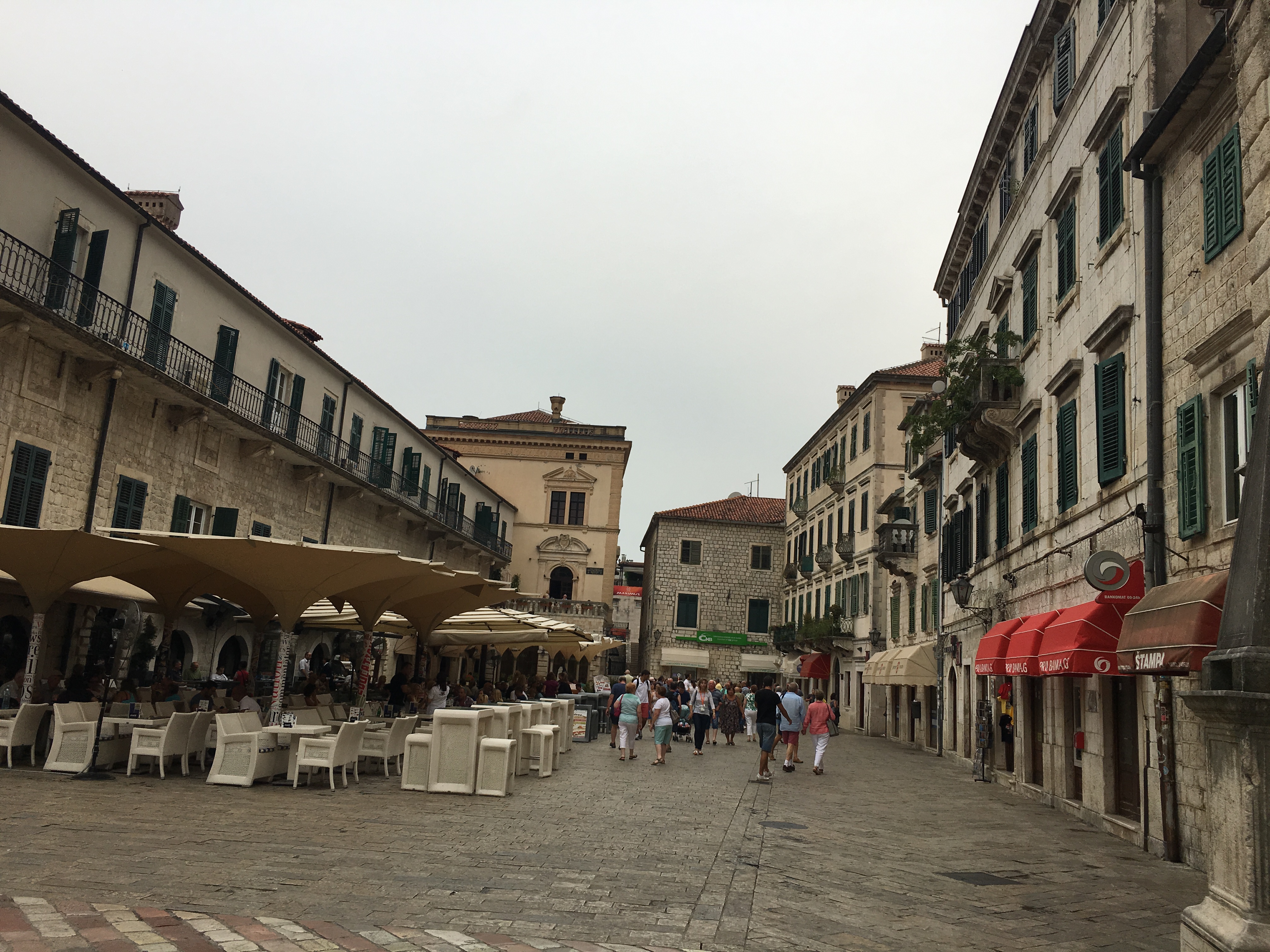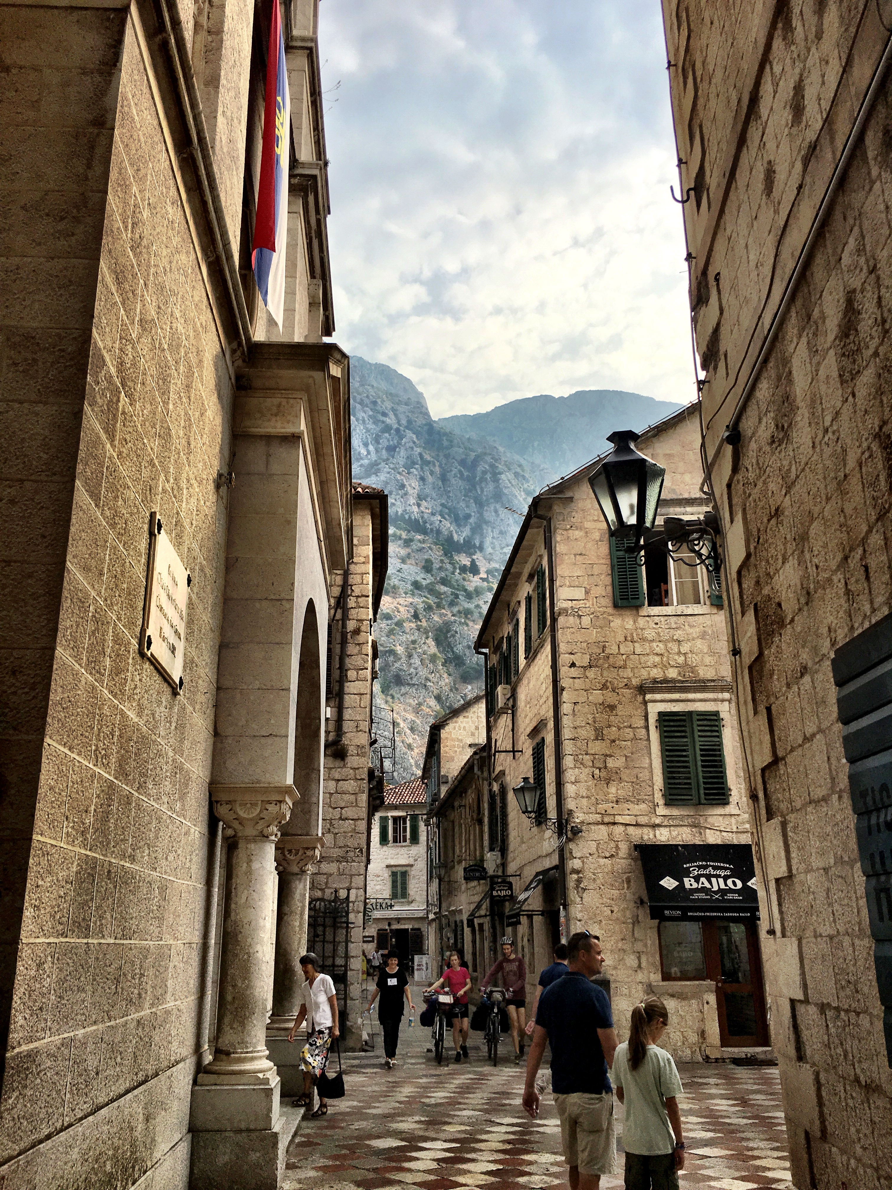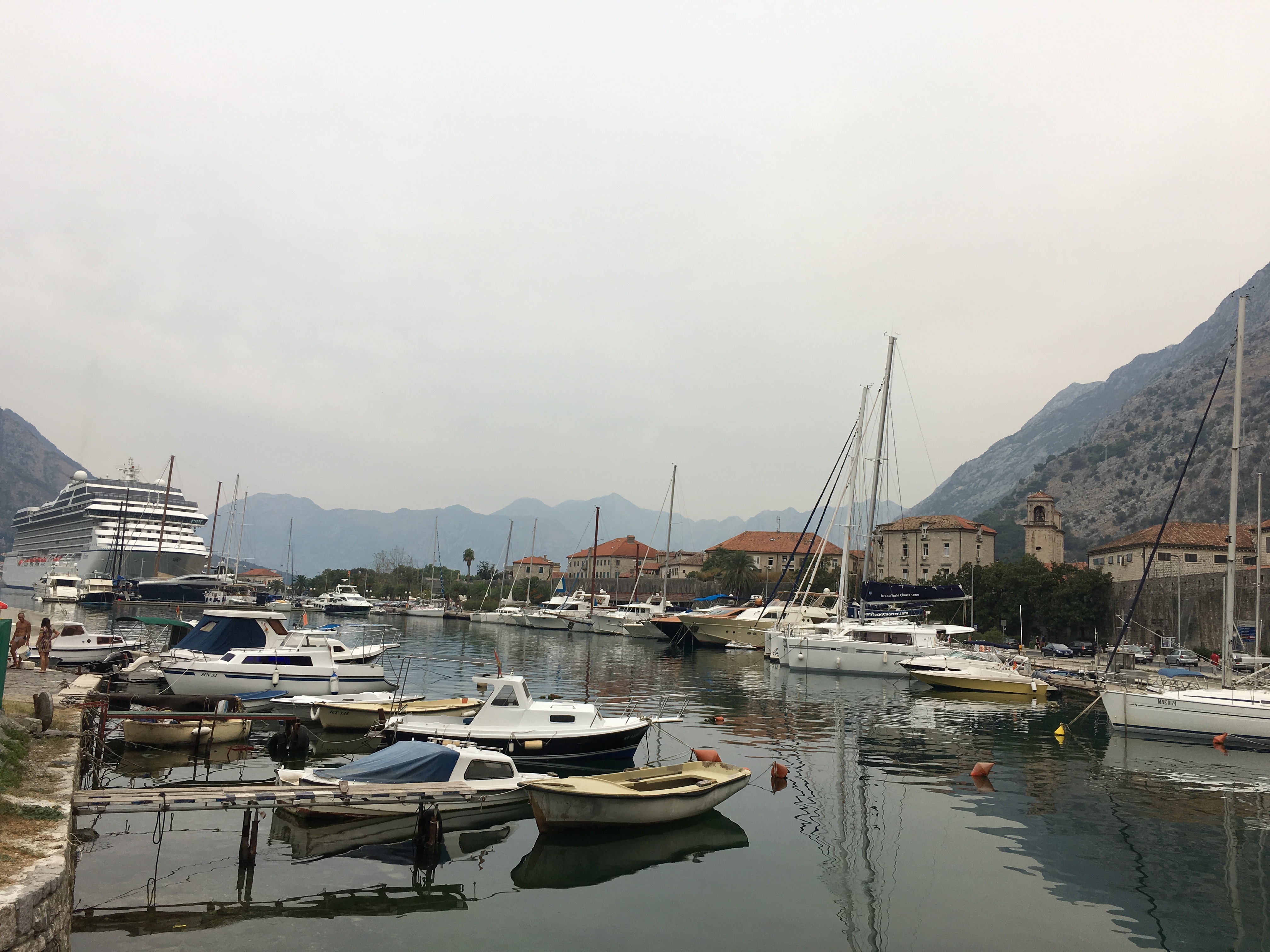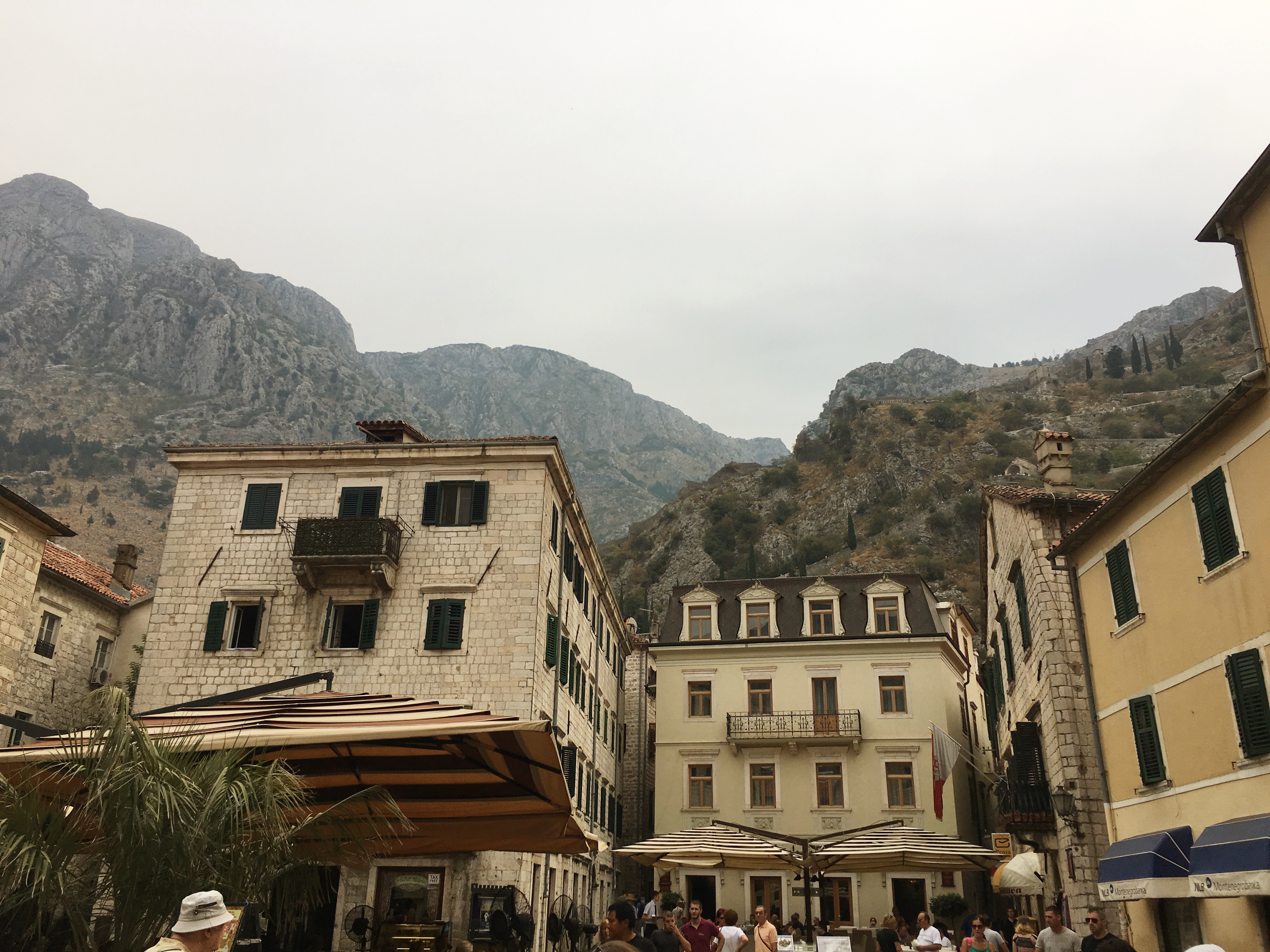Am nächsten Tag geht es mit dem Bus nach Kotor, noch vor den Touristenmassen haben wir um 8.30 Uhr die wunderschöne alte Stadt für uns. Die große historische Anlage ist umringt von einer Stadtmauer, die sich bis auf den Weg zu den am Berghang gelegenen Kirchen und Türmen zieht.