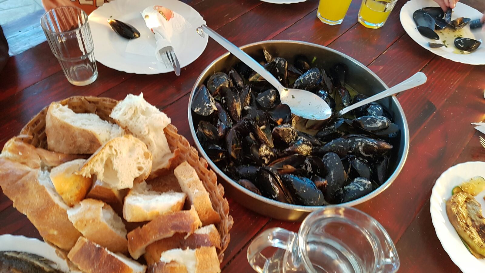 Bekannter Platzwart „der Professor“ ist streng beim einweisen, dafür der Empfang unserer Allrad-Freunde umso herzlicher. Ein lustiger Abend mit reichlich Muscheln, Dorade und dem scheußlichsten Weißwein, den wir je getrunken haben, nebst bunten Persönlichkeiten aus dem Camping-Szene lassen auch diesen Ort unvergesslich werden. Ein kleines Gelage an der Maggy-Bar, inklusive einer sagenhaften Brillen-Fotosession runden den letzten gemeinsamen Abend ab.